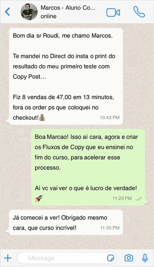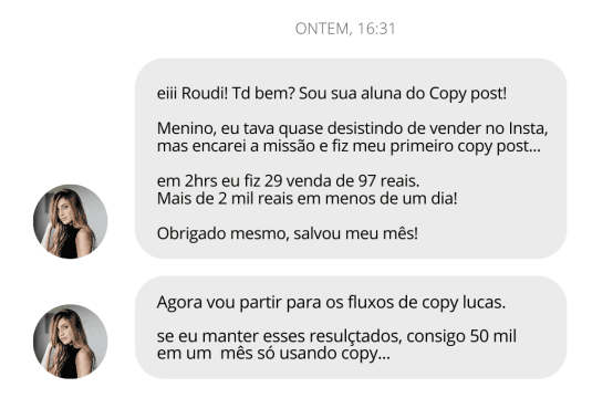 Mas aplicou o meu estilo de conteúdo, que batizei de Copy Post, e assim ela provou do lucro imediato…