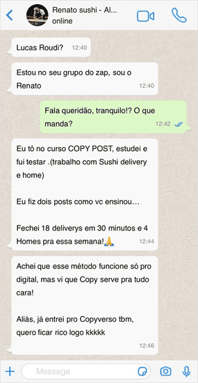 E eu defendo que Copy é a única forma de criar vendas “invisíveis”, onde o leitor do seu conteúdo ou mensagem quando menos espera, se tornou seu cliente, porque eu vivo isso diariamente…