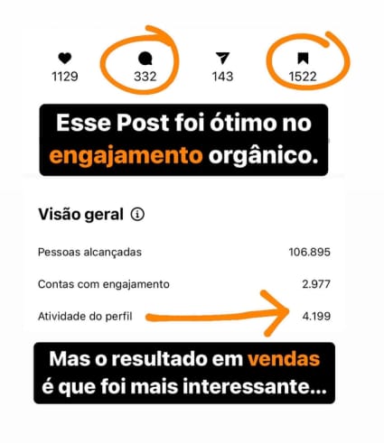 Esse Post foi ótimo no engajamento orgânico. Mas o resultado em vendas me surpreendeu muito mais...